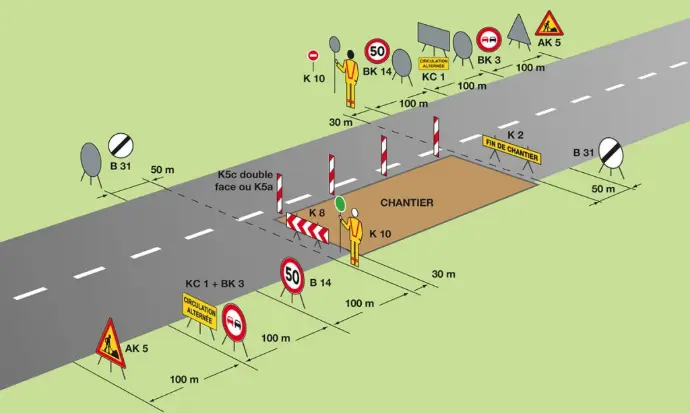 - L’élaboration de plans de signalisation adaptés à vos chantiers, conformes aux normes en vigueur, notamment la réglementation Qualiroutes ;